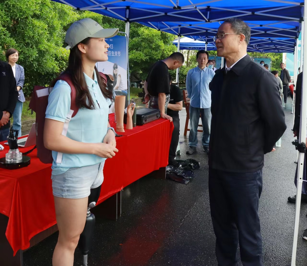 科技赋能显担当,爱心助残践初心——浙江星源假肢全国助残日行动纪实科技赋能显担当,爱心助残践初心——浙江星源假肢全国助残日行动纪实 在全国助残日这个传递温暖与力量的特殊日子里,浙江星源假肢矫形器有限公司积极响应习近平总书记“残疾人是推进中国现代化的重要力量,也是需要格外关心,格外关注的特殊困难群体”的号召,以实际行动践行企业社会责任,全方位、多层次参与助残事业,用科技与爱心为残疾人群体点亮希望之光。 科技助残,点亮希望之光 2025年,省政协赴庆元县开展科技助残活动,作为假肢公司,我们积极参与其中,运用专业技术与科技助残团队紧密合作。我们深知,合适的假肢是残疾人重新拥抱生活、追逐梦想的桥梁。 图中是星源假肢穿戴者在给领导讲述穿戴体验